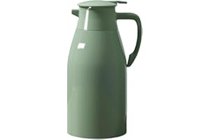 魔法瓶 保温ポット 卓上ポット コーヒーサーバー ステンレス製 真空断熱 保温 保冷 大容量 飛散り防止 割れない 開閉簡単 高い保温効力 ホットとコールドデュアル使用 ヨーロピアンスタイル おしゃれ 業務 オフィス 家庭用やかん (グリーン,800