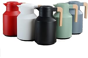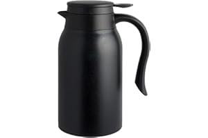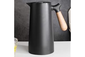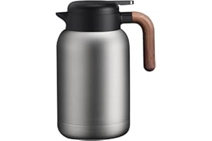 DUIERA1.8リットル魔法瓶ポット保温保冷ポット1800mlポットおしゃれなポットステンレスティーポット保冷ティーポット卓上ポット木製のハンドルと蓋付き、黒