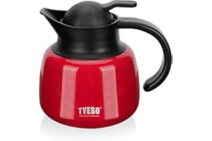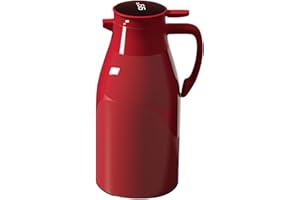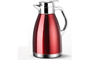 魔法瓶 保温ポット 卓上ポット コーヒーサーバー ティーポット ステンレス製 真空断熱 保温 保冷 二重壁設計 高い保温効力 大容量 開閉簡単 省力 洗いやすい フィルター付き ホットとコールドデュアル使用 オフィス 家庭用 (レッド, 800ml)