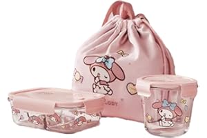 ハローキティ マイメロディ シナモロール 弁当箱 ランチボックス 丸いスープボウル 長方形 透明 2つ仕切り 3つ仕切り 耐熱ガラス ポータブル 1000ML 大容量 お弁当箱 耐熱耐冷 食器洗い機可 オーブン可 冷凍可 電子レンジ対応 (Size
