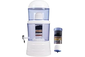 WXQ【アクアシステム】多層ろ過機能付き浄水器、浄水器、濾過バケツ、 ミネラルウォーターポッ、トセラミックカーボンミネラル浄化 、キッチン用品 災害対応にも適した家庭・学校・寮・旅行・キャンプ・出張用アイテム (14L+一体型フィルター+セラミックコ