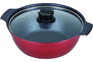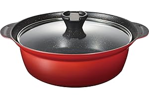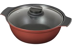 パール金属 焼付塗装 卓上鍋24cm 3-5人用 ガラス蓋付 マーブルダイヤモンド加工 IH対応 鍋日和 HB-5612 ブラック,レッド