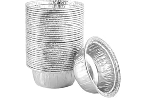 アルミバーベキュープレート アルミホイルパン 使い捨て ホイルパン 高耐久食品容器 パイ皿 冷凍庫&オーブン対応 30個パック (450ml, Round plastic cover)