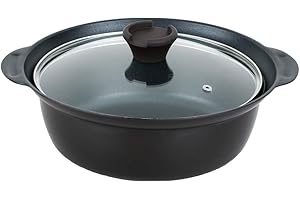 マルヨシ陶器 セラミック加工IH土鍋 8号 ブラック 内径25.5cm×外径28cm×高さ13.5cm 日本製 3-4人用 IH 直火 オーブン 対応 2.2L M0183