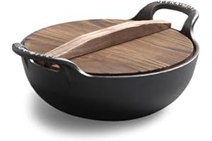 鋳鉄のインゴット鍋 鉄鍋土鍋木蓋付き 鉄鋳物製 ガス火 IH 対応 本格的な鉄製のお鍋で旅館のようなお食事を 蓄熱性と柔らかい熱あたり 鍋料理 湯豆腐 おでん うどん ラーメン などに コーティングされていないバイノーラルフライパン (なべ+木のふた