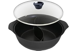 every U. 二色鍋 ハーモニーポット ガラス蓋付 フッ素加工 仕切り付き 卓上鍋 両手鍋 鍋 火鍋 しゃぶしゃぶ 鍋 ih 火鍋 二食鍋 ふっ素加工 IH対応 PFOSフリー