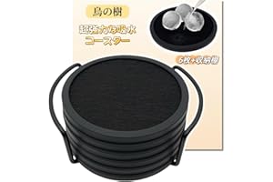 烏の樹 コースター 吸水フェルトパッドシリコン ダブルコンビ オシャレ くっつかない 速乾耐熱 滑らない 交換可能な内部コア 丸型 6個セット収納ラック 10cm(黒)