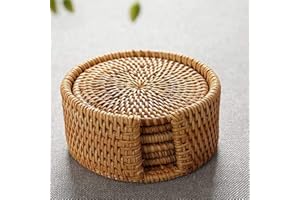 Homehalo アタ コースター 丸型 6枚セット 茶托 防水 収納ケース付き 滑り止め 茶パッド 断熱パッド お茶 お酒 コーヒーのカップスタンド ハンドメイドナチュラルコースター (8CM)