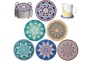 EASYLEE コースター 吸水セラミックカップマット エコ 素材(含まない アスベスト) 高吸水性 断熱 速乾 茶パッド コップ敷き ドリンク コーヒー 茶托 滑り止め コースター おしゃれ(珪藻土よりも良い) (6 曼陀羅&収?棚)