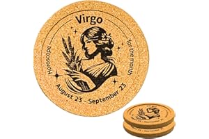HikariAtari 星座コースター、おしゃれなイラスト、コルク、丸型、 十二星座各2枚入り、プレゼントに最適、ジッパー付きクリアケース (乙女座)
