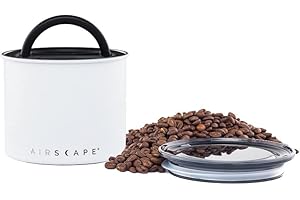 Airscapeステンレススチール製コーヒーキャニスター | 食料品収納容器 | 特許取得済み密封蓋 | 空気を外に押し出し食料品の鮮度を保つ(スモール、マットホワイト)