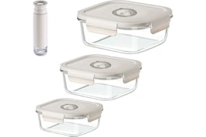 Y K YUKO 融光 真空保存容器 耐熱ガラス 525ML+800ML+1230ML(プレミアムモデル)+手動ポンプセット - 食品保存、鮮度長持ち 漏れ防止 食品真空保管ボックス 電子レンジ・冷蔵・冷凍OK、食洗機対応、におい移り防止、気密 衛生