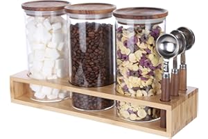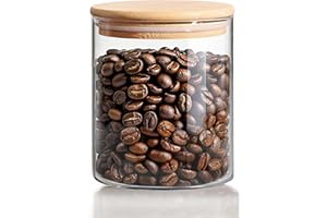 ComSaf コーヒー豆 保存容器 750ml キャニスター ガラス 透明 竹蓋付き 密閉容器 調味料入れ 砂糖 小麦粉 ナッツ 紅茶ティーバッグの保存用 丸型 1個セットキッチン収納用