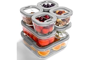耐熱ガラス 保存容器 7点セット(240ml×4、560ml×2、1370ml×1) - 電子レンジ・オーブン・冷凍対応 シリコン蓋 密閉容器 液漏れ防止 離乳食 作り置き 食器 収納 グレー