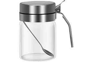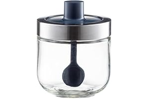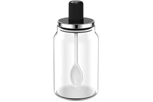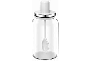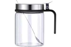Ruixiangmaoyi キッチン必備!300ml耐熱ガラス調味料容器 ステンレス蓋&スプーン付 塩・砂糖・塩こしょう・香辛料専用収納 高級調理アクセサリー