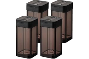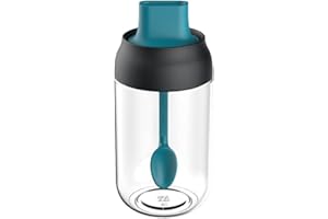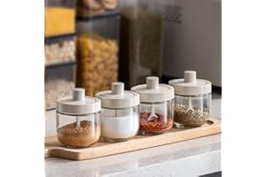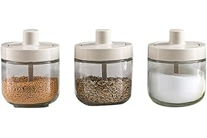 調味料ポット スプーン付き 密閉 調味料入れ 調味缶 スパイスボトル 塩 砂糖入れ 粉ふり器 内蔵スプーン 耐熱ガラス 保存容器 湿気防止 洗いやすい キッチン用品 調味料ボトル 便利 調理用 小物入れ (グレー) [並行輸入品]