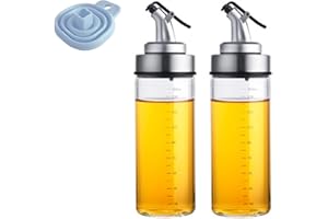 カルクライフ オイルボトル ガラス 2個セット 170ml 液だれしない 醤油ボトル 耐熱ガラス オイル差し 油容器 漏れ防止 酢ボトル 調味料入れ 防塵 保存容器 家庭キッチン用 透明 料理用 漏斗付き