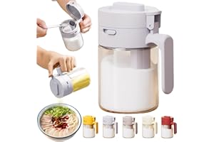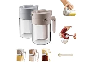 調味料入れ 調味料ポット 塩 砂糖入れ【2025年最新 2in1】 300ML 耐熱ガラス スパイスボトル スプーン内蔵 粉ふり機能 湿気防止 調味缶 家庭用 調味料ボトル 透明 調味料保存容器 ハンドル付き 洗いやすい 多機能キッチン用品 (グレー