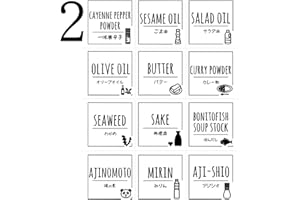 調味料ラベル イラスト ラベル ラベルシール イラスト付き 光沢紙 詰め替え容器用 基本調味料 DIY おしゃれ 【非シールタイプ】 【ノーカット】 12枚 1シート 一枚あたり縦横2.5×2.5mm (英語×日本語×イラスト, 02:調味料,食料品
