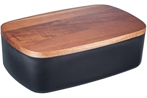 レコルト ブレッドケース 木製フタ 天然木 アカシア素材 カッティングボード フタが外せる パンケース 一斤サイズの食パンが収納可能 スライドラックトースター下に収納可能 recolte RCB-5 (ブラック)