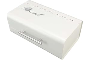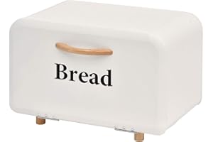 ブレッドビン、鉄製大容量クラムシェルドアブレッドボックス ロールパンケーキ用 パンコンテナ ホームキッチンオフィス用(白)