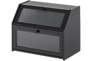 ブレッドケース キッチン収納 キッチンカウンター用パン箱 竹製木製パン箱 大容量パン収納箱 パン保存ケース 食パンケース(Black)