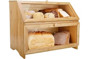 Brfveob ブレッドケース キッチン収納 キッチンカウンター用パン箱 竹製木製パン箱 大容量パン収納箱 パン保存ケース 食パンケース