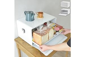Yobuisg ブレッドケース パン ケース 保存 パン箱 スライド式扉 調味料 収納 スナック菓子収納 収納ボックス (White)