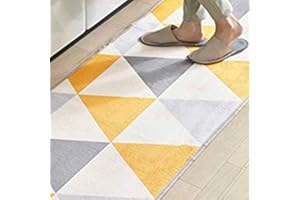 アイリスプラザ(IRIS PLAZA) キッチンマット 台所マット 玄関マット フランネル 滑り止め付き 洗える 年中使える 防ダニ加工 ふわふわ ホットカーペット対応 幾何学 トライアングル×イエロー 60×180cm FNR-K-6018
