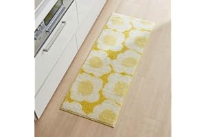 [ベルメゾン] キッチンマット グレイッシュカラー 北欧調 デザイン マット フラワー(イエロー) 約65×240