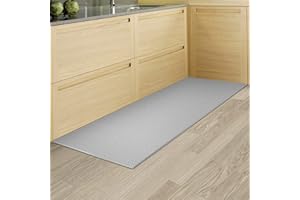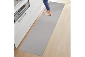 Deconovo キッチンマット PVC素材 撥水加工 滑り止め グレー 44cmx180cm 洗濯不要 すべりにくさ 北欧 おしゃれ はっ水 無地 拭ける 厚さ8mm ずれない 台所 マット フカフカ 厚手 防汚