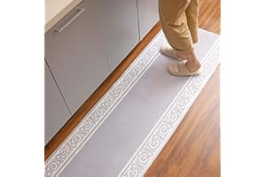 拭ける!キッチンマット 60×240cm 低反発 厚さ6mm 洗濯不要 PVCキッチンマット クッション性のあるPVC素材 お手入れ簡単 PVCマット 滑り止め ずれにくい 台所マット 拭けるキッチンマット 柔らかな踏み心地 グレー