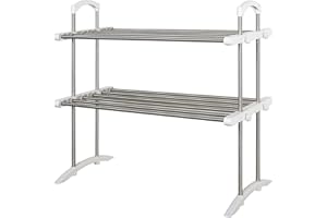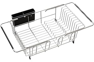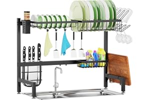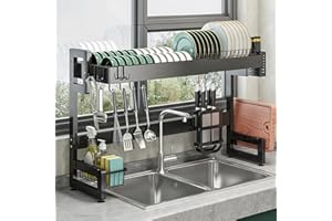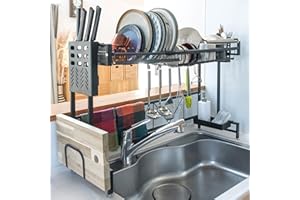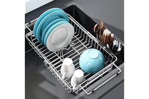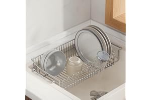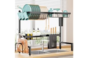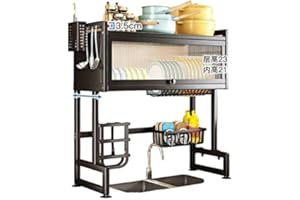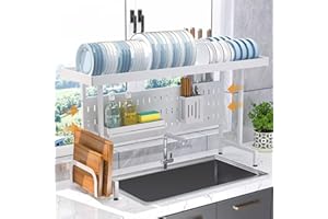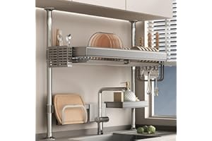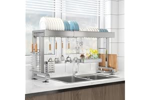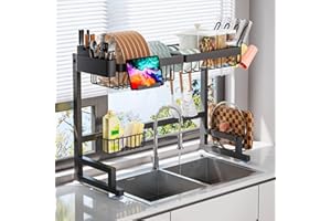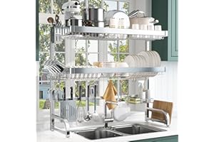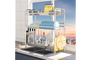 ADBIU 【24.5インチ~32インチのシンクにフィット】 2025年版 シンク上水切りラック (拡張可能な寸法) スナップオンデザイン 2段 大型キッチンディッシュラック ステンレススチール カウンターの整理と収納