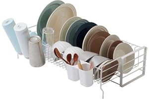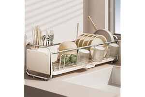 Zilnox 水切りラック スリム 食器 水切り かご シンク上 ラック 大容量 キッチン 箸立て 省スペース 食器乾燥 クリームホワイト 幅43*奥行17*高17CM