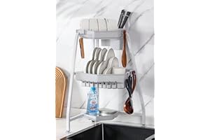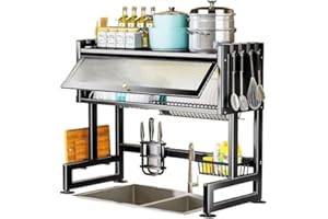 シンク上 水切りラック 水切りラック 2段 水切りかご 食器 水切り 食器棚 大容量 スリム シンク上 コンパクトまな板受け付き キッチンシンク上の棚 台所用品ホルダ多機能収納ラック 省スペース 組み立て簡単 幅85*高さ80*奥行30