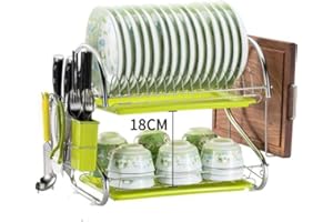 2/3段式食器水切りラック キッチン用品食器水切りラック 水切りかご キッチン収納 かご バスケットステンレス製 食器乾燥ラックまな板 茶碗収納 水切りかご お皿水切りラックトレー付き (パターン(箸ケージ+まな板棚), 2つトレー:グリーン)