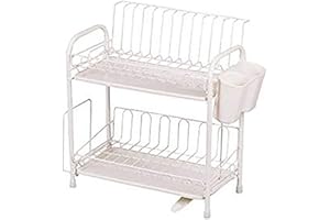 Sameyo 食器 水切りラック 2段 シンクサイド 水切りカゴ 大容量 収納ラック ワイド 箸立て 包丁スタンド まな板たて 台所用ホルダ 自動排水 乾燥可能 水切りバスケット (ホワイト 2段)