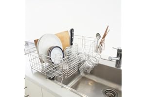 水切りラック 水切りカゴ 水切りかご スリム シンク上 ラック キッチン コンパクト 一人暮らし 伸縮 スライド SUS304ステンレス 大容量 コップ立て 箸立て まな板立て 包丁立て おしゃれ 一年保証 省スペースデザイン シンク収納 耐錆性(ス