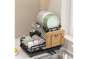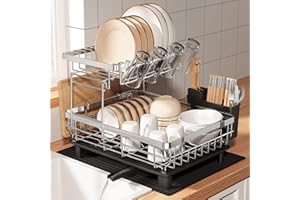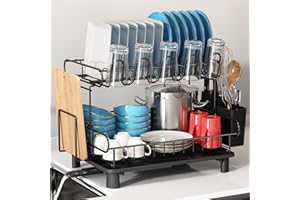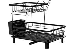 Hoisimdy 食器水切りラック キッチン 水切り 食器ラック 食器乾燥ラック 自動排水 2段 (ブラック)