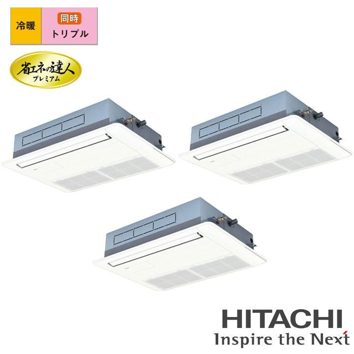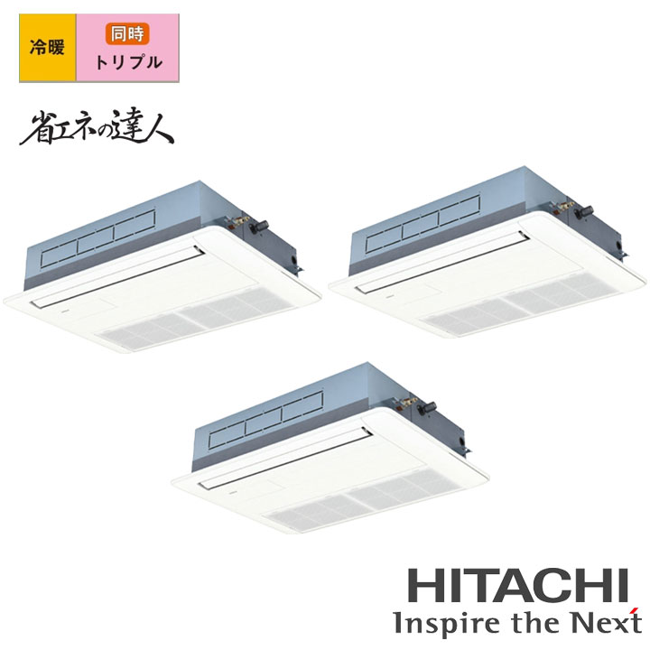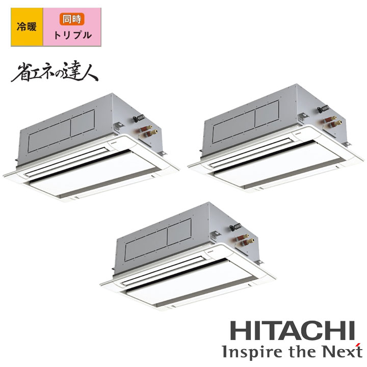 【法人名必須】【RCID-GP160RSHG11】日立 店舗・オフィス用パッケージエアコン てんかせ2方向 省エネの達人160型(6馬力相当) トリプル 三相200V 冷暖 ヒーターレス HITACHI ※品番にて注文をさせていただきます。メーカーにて品番の確認をお願いいたします。画像はイメージです。 ●160型(6.0馬力相当) ●チャージレス30m ●冷房:14.0(3.5〜16.0)kW ●暖房:16.0(4.0〜20.0)kW ●室内RCID-GP56KA×3 ●室外RAS-GP160RSH4 ●化粧パネルP-AP90DNA1×3 ●分岐管TG-NP16A ●リモコンPC-ARFG4