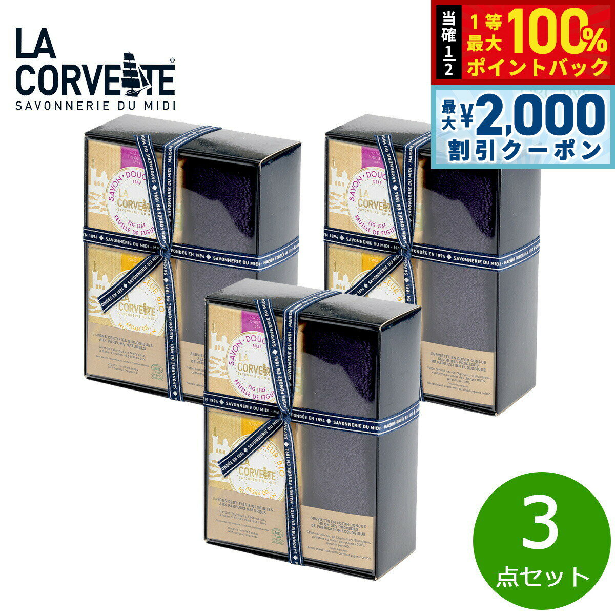 お肌と地球にやさしい、オーガニック認証COSMEBIOコスモスオーガニック取得の固形石鹸フィグリーフ&アルガンオイル、オーガニックコットン由来のやわらかなタオルをセレクトしたこだわりのギフトセット。商品名LA CORVETTE ラ・コルベット ラ・コルベット オーガニックセレクションブランドLA CORVETTE名称石鹸&タオル原材料サボン、ドゥスール、ビオ フィグリーフパーム脂肪酸Na、パーム核脂肪酸Na、水、香料、グリセリン、グルタミン酸ジ酢酸4Na、塩化Na、クエン酸、水酸化Na 、リナロール、リモネン、オイゲノールサボン、ドゥスール、ビオ アルガンオイルパーム脂肪酸Na、パーム核脂肪酸Na、水、香料、グリセリン、グルタミン酸ジ酢酸4Na、アルガニアスピノサ核油、塩化Na、クエン酸、水酸化Na 、ゲラニオール内容量3点セット大きさ124×162×54mm原産国フランス オリーブオイルを運んでいた船の名称を由来に持つラ・コルベットは、伝統的な基準を守り、本物の「サボン・ド・マルセイユ」を製造する数少ない製造社として、120年以上の歴史を重ねてきたサボネリー・デュ・ミディ社が展開するライフスタイルブランド。基準が守られていない模倣品が増える中、本物のマルセイユソープやお肌と環境にやさしいエコフレンドリーな製品を世界中に提案し続けています。オーガニックソープとオーガニックコットンタオルを詰め合わせた、こだわりのギフトセット。敏感肌の方もきめ細かい泡がお肌をやさしく洗い上げます。セット内容:サボン・ドゥスール・ビオ フィグリーフ 100g×1、サボン・ドゥスール・ビオ アルガンオイル 100g×1、オーガニック コットンタオル×1(素材:綿、原産国:トルコ、規格サイズ:30×30cm)※規格サイズについては、若干の誤差があります。使用上の注意:お肌に合わない場合はご使用をお止め下さい。乳幼児の手の届かない場所で保管して下さい。内容成分でアレルギー等を起こしたことのある方はご注意下さい。※パッケージ・ラベル・仕様は予告なく変更となる場合があります。※商品の改良や表示方法の変更などにより、実際の成分と一部異なる場合があります。実際の成分は製品の表示をご覧下さい。本体重量930gメーカー名ダイショートレーディング株式会社LA CORVETTE ラ・コルベット ラ・コルベット オーガニックセレクションお肌と地球にやさしい、オーガニック認証COSMEBIOコスモスオーガニック取得の固形石鹸フィグリーフ&アルガンオイル、オーガニックコットン由来のやわらかなタオルをセレクトしたこだわりのギフトセット。