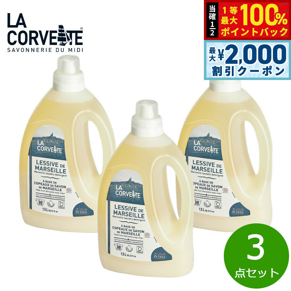 お肌にも環境にもやさしい天然由来成分99.5%の洗濯用液体石鹸。ショードロンと呼ばれる大釡で伝統製法でつくられた本物のマルセイユ石鹸を配合。汚れを落とし衣服をやわらかく洗い上げます。無香料タイプ。ECOCERTナチュラル洗剤認証取得。商品名LA CORVETTE ラ・コルベット ランドリーソープブランドLA CORVETTE名称洗濯用液体石鹸原材料水、オリーブ脂肪酸K、(カプリリル/カプリル)グルコシド、パーム脂肪酸Na、パーム核脂肪酸Na、キサンタンガム、グルタミン酸ジ酢酸4Na、カオリン、塩化Na、水酸化Na↓家庭用品品質表示法界面活性剤(7.57% オリーブ脂肪酸K、パーム脂肪酸Na、パーム核脂肪酸Na、(カプリリル/カプリル)グルコシド))、増粘剤(キサンタンガム、塩化Na)、キレート剤(グルタミン酸ジ酢酸4Na)、吸着剤(カオリン)、PH調整剤(水酸化Na)内容量1500ml×3点大きさ140×70×260mm原産国フランス オリーブオイルを運んでいた船の名称を由来に持つラ・コルベットは、伝統的な基準を守り、本物の「サボン・ド・マルセイユ」を製造する数少ない製造社として、120年以上の歴史を重ねてきたサボネリー・デュ・ミディ社が展開するライフスタイルブランド。基準が守られていない模倣品が増える中、本物のマルセイユソープやお肌と環境にやさしいエコフレンドリーな製品を世界中に提案し続けています。使用方法:以下の用量を目安に使用して下さい。30℃の手洗いまたは機械洗浄に適しています。軽く汚れた洗濯物:35ml(キャップすり切り1杯分)通常の洗濯物:50ml非常に汚れた洗濯物:65ml使用上の注意:用途以外に使用しないで下さい。乳幼児の手が届かない場所で保管して下さい。万一目に入ったり、飲み込んだりした場合は、応急処置を行い、医師に相談して下さい。衣料品の取扱表示に従って洗濯して下さい。色柄物や生成りなど、色落ちや変色が心配な衣料は目立たない部分で試し洗いし、色落ち、変色するものには使用しないで下さい。応急処置:目に入った場合は、水で数分間洗い流して下さい。飲み込んだ場合は、吐かずに口をすすぎ、水を飲むなどの処置をして下さい。※パッケージ・ラベル・仕様は予告なく変更となる場合があります。※商品の改良や表示方法の変更などにより、実際の成分と一部異なる場合があります。実際の成分は製品の表示をご覧下さい。本体重量4800gメーカー名ダイショートレーディング株式会社LA CORVETTE ラ・コルベット ランドリーソープお肌にも環境にもやさしい天然由来成分99.5%の洗濯用液体石鹸。ショードロンと呼ばれる大釡で伝統製法でつくられた本物のマルセイユ石鹸を配合。汚れを落とし衣服をやわらかく洗い上げます。無香料タイプ。ECOCERTナチュラル洗剤認証取得。