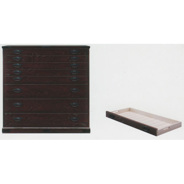 ☆送料無料 開梱設置☆ 【榎津民芸】の105cm8段タンス 材質 :表面材 天然木国内産ケヤキツキ板 内装材 桐 サイズ:幅105cm×奥行45cm×高さ109cm ■塗装はウレタン塗装 ■国産、本ケヤキ突き板使用(天板、側面、前板) 内装材桐 ■引き出しは桐材、釘を使わないアリ組工法 ■塗装は時代塗り ■金具はダイカスト ■背面化粧仕上げ ■熟練の職人技 ■塗料、合板共にF★★★★以上使用 ■表面材は目のきれいな東北産ケヤキ使用 ※北海道、沖縄、離島は別途料金が加算されます。 ※画像と現物では色等が若干異なる場合があります事をご了承下さい。 (天然木の為、色、木の模様が異なる場合がございます。) ※ご注文からお届けまでの流れ大型家具のご注文の際は必ずご確認ください。 ■■こちらをクリック_※ご注文からお届けまで■■送料無料 開梱設置 サイズ: 本体:W1050mmXD450mmXH1090mm 材質: 天然木 国産ケヤキ材 内装材 桐 カラー: 時代色 組立: 完成品でのお届けです。 備考: 国産 完成品国産、本ケヤキ材使用、熟練の職人技引き出し 釘を使わないアリ組仕様裏面化粧仕上げホルムアルデヒド放散等級 F-4北海道、沖縄、離島(四国を除く)は別に料金をお見積もりいたします。写真と現物の色等は若干異なる場合があります。