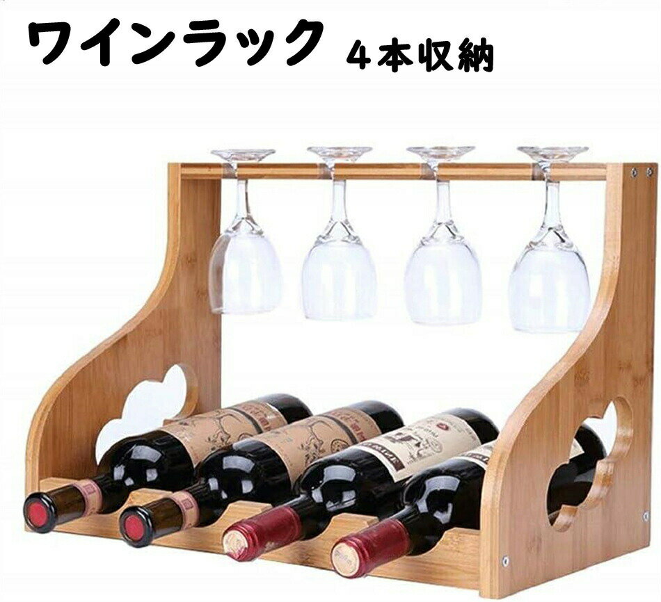 【ワインボトルとグラスをオシャレに置けるワインホルダー+ワイングラスラック】 4本のボトルと4つのグラスを収納可能。 どんな空間にも溶け込むシンプルなデザインでインテリアに最適。 お店やご自宅にワインをお洒落にストック。 やさしいナチュラルな風合いの天然木の素材を使用。 女性でも簡単にできる組み立て式。 軽量で保管や持ち運びに便利。 お店やご自宅にワインをお洒落にストックしておくことができる。 水平のボトル収納はコルクをしっとり保つことができ、酸化を防ぐ。 シンプルなデザインでキッチン等のディスプレイスタンドとしても。 年齢問わず好まれるデザインで、ワインと一緒にプレゼントしても喜んでもらえる逸品。 【商品説明】 ボトル4本・グラス4個収納 サイズ:44.5cmx30cmx23.5cm 素材:木製 ※商品には多少の個体差がございます。予めご了承くださいませ。 ※PC環境・光の具合により、色や素材のイメージが写真と若干異なる場合がございます。 ※モデル・写真に使用されているアクセサリー・小物は別途記載が無い限り付属いたしません。 ※商品のお色はお客様のPC環境によって多少色合い、見え方など違ってまいりますのでご了承下さいますようお願いします。 ※写真の色調はご使用のモニターの機種や設定により実際の商品と異なる場合があります。 ※商品のサイズは、全て平置きにて外寸を測定しております。 ※商品によっては±1cm〜3cmの誤差が発生してしまう場合がございます。予めご理解いただきますようお願い致します。 ※該当商品は他店と在庫共有です。タイミングにより、在庫ズレが生じる場合がございます。予めご了承ください。 ※パッケージは改良のため予告なく仕様を変更する場合があります、ご理解いただきますようお願い致します。