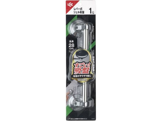 【商品説明】●浴室内のザラザラ壁、スリガラスにも取り付けできるジェル吸盤タイプのタオル掛けです。●さびにくく丈夫なステンレスパイプです。●中央を押してレバーを下げるとしっかり吸着します。【仕様】●本体サイズ:W280×D57×H52mm●内容量:1個●材質:支持部:ABS樹脂(メッキ仕上げ)・ポリアセタール、パイプ:ステンレス鋼管・ABS樹脂(メッキ仕上げ)、吸盤:ポリアセタール・ポリウレタン●荷重制限:1kg(平滑面における耐荷重。微細な凹凸面に使用する場合の耐荷重はやや下がります。)●生産国:中国【取り付けられる所】光沢面、微細なザラザラ面、ツヤ消し面、ごく浅い凹凸のある面で空気や水を通さない材質面・吸盤より大きいタイル、模様のないステンレス、プラスチック面、透明ガラス、鏡面(くもり止め加工などの表面加工鏡は除く)、冷蔵庫・洗濯機などの金属塗装面、浴室の壁などのザラザラした面、カスミガラスなどの凹凸のあるガラス面、スリガラス※強力吸盤なので、破損のおそれのある薄いガラス・鏡面でのご使用はお避けください。※場所によっては、油分やシャンプーなどが付着している場合があります。台所用中性洗剤を薄めたぬるま湯でよく拭きとり、よく乾かしてからお取り付けください。【取り付けられない所】真空状態を保てないほどの大きな凹凸・段差・溝の上・布やビニルなどの壁紙、木壁、塗装合板、しっくい、モルタル、湾曲した面、傷のある面など・レンジ、ストーブなどで高温になる所、直射日光の当たる所、屋外【使用上の注意】・手すりとして使用するなど、本来の用途以外での使用はおやめください。・万一の落下にそなえて貴重品やこわれやすいものを掛けたり付近に置かないでください。・通常の吸盤に比べて大きな負荷がかかるため、突然落下する恐れがあります。・火のそばで使用しないでください。・吸盤は真空の力を利用した取付具のため、空気が入ると外れやすくなります。吸着力を保つために以下にご注意ください。・壁や吸盤に汚れ・ホコリなどがあると付きません。・荷重制限をお守りください。・直射日光の当たる場所で使用しないでください。ジェルが変質するおそれがあります。・洗剤や漂白剤、シンナーなどがメッキの表面に付かないようにしてください。変質・変色のおそれがあります。【備考】※メーカーの都合により、パッケージ・仕様等は予告なく変更になる場合がございます。【検索用キーワード】レバー式ジェル吸盤タオル掛け ミニ タオルかけ タオル掛け 吸盤 個 1個 浴室 壁 ガラス タイル B00558 R306KNすごい吸盤!