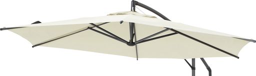 EGプッシュハンギングパラソル2.5m専用の替え布です。※布部分のみの販売です。 オックスフォード生地を使用しているので、高いUVカット率と遮光率により軒先に快適な日かげをつくり、暑い夏でも屋外の心地よさを楽しむことができます。※生地に撥水加工を施しておりますが長時間水に濡れた状態では水が染み込むことがあります。生地に防水性はありません。 サイズ:約幅250cmx奥行250cm 重量:約1.2kg 材質:ポリエステル(撥水加工) カラー:オフホワイト UVカット率:約95% 遮光率:約95% 交換時の必要工具:プラスドライバー 構造:完成品