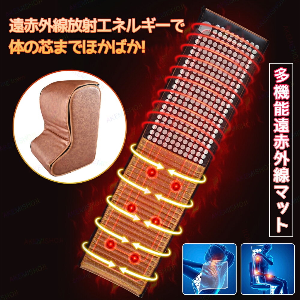 商品詳細 製品サイズ 組み合わせ(フットウォーマー):42*37*57cm 展開(全身ウォーマー):縦155cm×横40cm 重量 約6kg 定格電圧 AC110V 温度調節 20~70℃ 特徴 特徴: ◎【遠赤外線効果】遠赤外線パッドが加熱されると、遠赤外線は皮膚や筋肉に深く均一に浸透し、人体の深部加温を行い、血液循環を促進し、筋肉のコリをほぐすことができます。 ◎【マイナスイオン】 遠赤外線パッドに充填された宝石は、加熱すると自然なマイナスイオンを放出することができます。自然なマイナス イオンは空気を浄化し、呼吸の環境を改良し、呼吸をより有効にすることができます。また、マイナスイオンは、疲労回復や睡眠改善にも効果があります。 ◎【ホットストーン】 天然宝石はよりよい熱を貯え、熱損失を減らすことができます。だから、より良い加熱と熱保存効果を提供することができます。 ◎【操作簡単】 温度は摂氏20度から70度まで調整できるので、最適な温度を簡単に見つけて使用できます。 ◎【折りたたみ式・無音】使わないときは折りたたんで収納でき、折りたたんだ後はとても薄いので場所を取らずに収納できます。遠赤外線加熱の採用により、使用時の騒音がなく、静かな環境で勉強や仕事ができます。 注意 ▼産地:Made in CHINA ▼商品は簡易包装でお送り致します。 ▼お使いのモニターによっては、実際の色と若干異なって見える場合があります。 ▼ 製造時期によりデザインや仕様に若干の変更がある場合がございます。ご了承ください。 ▼実寸は素人採寸ですので、多少の誤差はご了承願います。 ▼この商品は当店実店舗でも販売しております。在庫数の更新は随時行っておりますが、 お買い上げいただいた商品が、品切れになってしまうこともございます。 その場合、お客様には必ず連絡をいたしますが、万が一入荷予定がない場合は、 キャンセルさせていただく場合もございますことをあらかじめご了承ください。