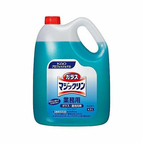 ●ホコリや手あかなどでくもった窓や鏡、ガラスケースなどの汚れもスッキリ落とす、ガラス・鏡用洗剤です。●2度ぶきなしでもふきスジを残さず、ピカピカで透明な仕上がりに。●ガラスからスチール、プラスチックまで幅広く使えます。●使えないもの ・水がしみこむ白木、家具・壁材等 ・ラッカー等の塗装面、自動車の塗装面 ・液晶、プラズマディスプレイの画面●メーカー:花王プロフェショナル●商品名:ガラスマジックリン 業務用●内容量:4.5L(業務用)●入数:1個●液性:弱アルカリ性●成分:界面活性剤(0.4%、アルケニルコハク酸カリウム塩)、泡調整剤●使用量の目安:1m2に対して約6回噴射(5ml)●サイズ(W*D*H)mm:210*146*289●特長:・つぶせる容器 ・さわやかなフレッシュレモンの香り●用途:窓、鏡、ガラスケース、自動車のフロントガラス、スチール、ビニール、プラスチック・ホーロー製品、サッシ、イス・飾り棚・冷蔵庫の外側に。●事業者向け商品です。リニューアルに伴い、パッケージ・内容等予告なく変更する場合がございます。予めご了承ください。広告文責:楽天グループ株式会社050-5212-8316