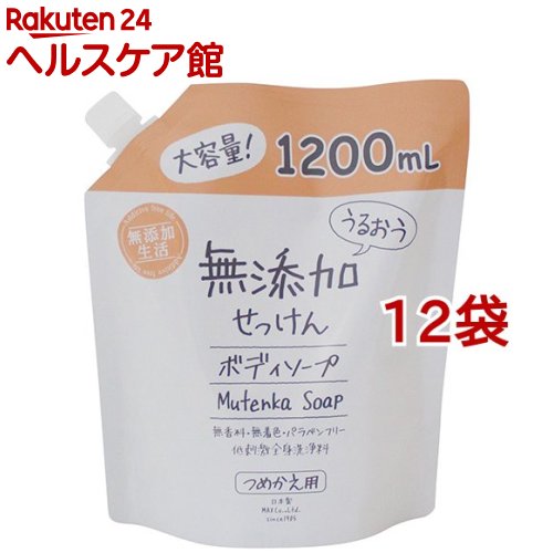 お店TOP>日用品>洗面・バス用品>ボディソープ(ボディシャンプー)>ボディソープ しっとり>うるおう無添加 ボディソープ つめかえ 大容量 (1200ml*12袋セット)商品区分:化粧品【うるおう無添加 ボディソープ つめかえ 大容量の商品詳細】●無添加の弱みである使用感を向上させた低刺激ボディソープ●島椿油で洗い上がりしっとり●香料、着色料、防腐剤、鉱物油無添加【販売名】ピュアリキッド W【使用方法】お湯を含ませたボディスポンジやタオルなどに適量をとりよく泡立てて洗い、その後ていねいに洗い流してください。【成分】水、カリ石ケン素地、グリセリン、ヒドロキシプロピルメチルセルロース、ジステアリン酸グリコール、ツバキ種子油、クエン酸【注意事項】・傷やはれもの・しっしん等の異常のある部位には、お使いにならないでください。・使用中、または使用後日光にあたって、赤味・はれ・かゆみ・刺激等の異常が現れた場合は、使用を中止し、皮膚科専門医等にご相談されることをおすすめします。そのまま使用を続けますと悪化することがあります。・目に入らないようご注意ください。目に入った場合は、こすらずにすぐに洗い流してください。・乳幼児の手の届かないところに保管してください。・香料、色素、防腐剤を含まない無添加石けんですので、石けん本来の特有な香りがしたり、また気候その他で変色している場合がありますが、ご使用には問題ありません。・本品は飲み物ではございません。【原産国】日本【ブランド】無添加生活【発売元、製造元、輸入元又は販売元】マックス※説明文は単品の内容です。リニューアルに伴い、パッケージ・内容等予告なく変更する場合がございます。予めご了承ください。(潤う無添加 ボディーソープ)・単品JAN:4902895039799マックス581-0084 大阪府八尾市植松町2-9-29072-994-5045広告文責:楽天グループ株式会社電話:050-5577-5042[ボディソープ/ブランド:無添加生活/]