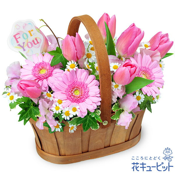■【2月の誕生花(チューリップ)】チューリップのハーモニーバスケット アレンジメント/オールラウンド 7590 円(税込)ピンク色でまとめられた、かわいらしくも爽やかなデザインのアレンジメントです。チューリップやガーベラなど、女性に人気の高いお花でバスケットを彩りました。どこから見てもお花が楽しめる、食卓などにも飾りやすいオールラウンドでお作りしています。お誕生日に最適なプレゼント。花言葉にのせて誕生花を贈りましょう。チューリップ花言葉の「美しい瞳 恋の告白(赤)、新しい恋」。世界中で愛されて続けているお花です。お届け先近くの花キューピットのお店から、メッセージカード付で直接お届けいたします。※商品価格にはご利用手数料990円(税込)が含まれております。※配達不能な区域がありますので必ずご確認ください。配達不能地域へのご注文についてはキャンセルとさせていただきます。【色合い】:ピンク【スタイル】:アレンジメント【主な花材】:ピンクチューリップ、ピンクガーベラ【サイズ】:高さ23×幅30×奥行22cm(花サイズ)【こんなご用途に】:誕生日・お祝い・記念日・両親への感謝の気持ちご注文に関する注意事項※写真はイメージです。 地域・季節によって、一部花材・花器等が異なる場合がございます。商品価格にはご利用手数料990円(税込)が含まれております。※配達不能な区域がありますのでご確認ください。配達不能地域へのご注文についてはキャンセルとさせていただきます。※メッセージカードは無料にてお付けします。※メッセージカードにはお名前は入りません。必要な場合はメッセージ内にご記入ください。 『 無 料 メ ッ セ ー ジ ご 利 用 の 方 へ 』 ●「定型文をご利用の場合」 ・上記商品欄の【メッセージ】を選択 ●「フリー入力をご利用場合」※産直ギフトはご記入していただいても、対応できません。 ・メッセージの入力場所:注文確認画面内の備考欄にございます、メッセージ入力欄にて承ります。 ・メッセージの文字制限:差出人のお名前を含み30文字まで。絵文字、機種依存文字などの文字は使用できません。 ※フリー入力をご利用の場合、上記商品欄の【メッセージ】で選択されたメッセージは記載されませんお届け日について※ご購入商品、お支払い方法により詳細が異なりますのでご注意ください。 ※コンビニ前払いの場合は:入金期限日前迄にご入金ください。※コンビニ前払いの場合、お花のご手配は入金後となります。期日までにお支払いが確認できない場合は、キャンセル扱いとさせていただきます。カード決済エラーによる入金遅延もこれに準じます。 注文後に送付されます【注文確認メール】に記載のある、支払い期日までにご入金ください。お届け先へ事前に在宅確認の連絡をする場合があります。なお、連絡がつかない場合は、ご指定の日時にお届けができない場合がございます。■コンビニ前払い際の注意ご注文後に、お支払い受付番号を記載したメールを楽天市場からお送りいたします。お支払いの際にはお支払い受付番号が必要です。※お届け希望日前日を過ぎての入金の場合、入金期限内でもお届け日を変更させていただく場合がございます。予めご了承ください。